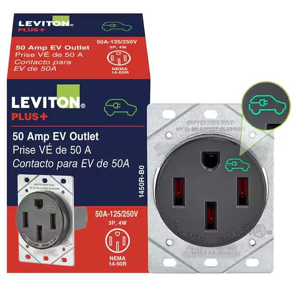 I strongly recommend that if you're going to use a NEMA 14-50 receptacle for charging, you should make sure the receptacle is built to handle EV charging loads. In 2025, the big box stores started stocking special receptacles meant to handle EV loads. These typically cost $40 or more compared to the $10 or less for the cheap ones, but this is money well worth spending.