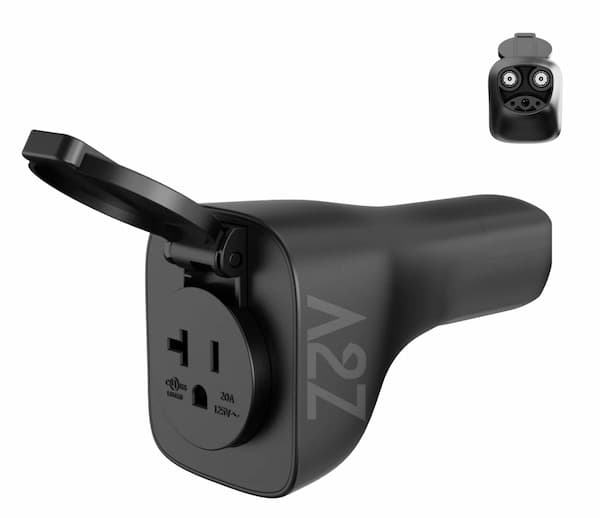 If you have a NACS 2026 Kia EV3, EV5, EV6 and EV9, 2025-2026 Hyundai Ioniq 5, Ioniq 6 and Ioniq 9, or a Lucid Gravity then the A2Z NACS V2L adapter will give you 120V/20A power output, shown below.